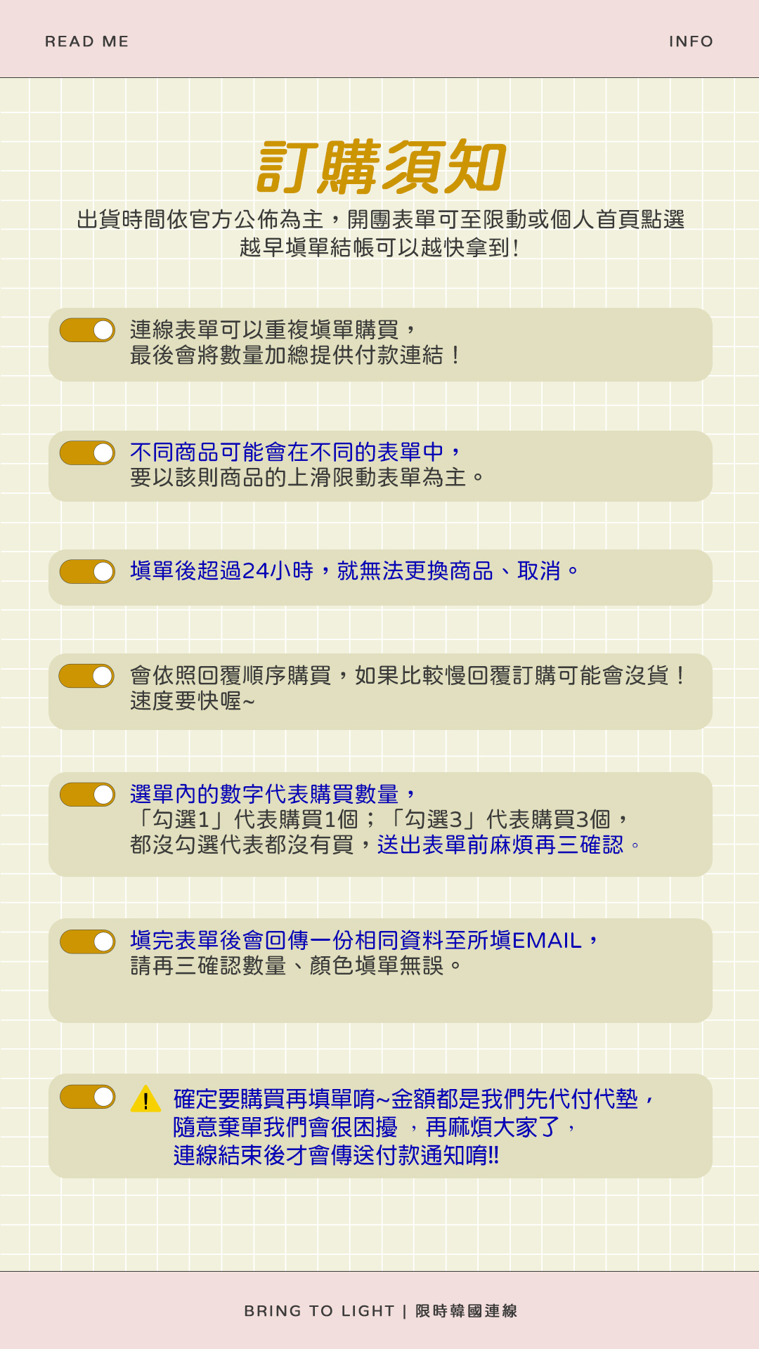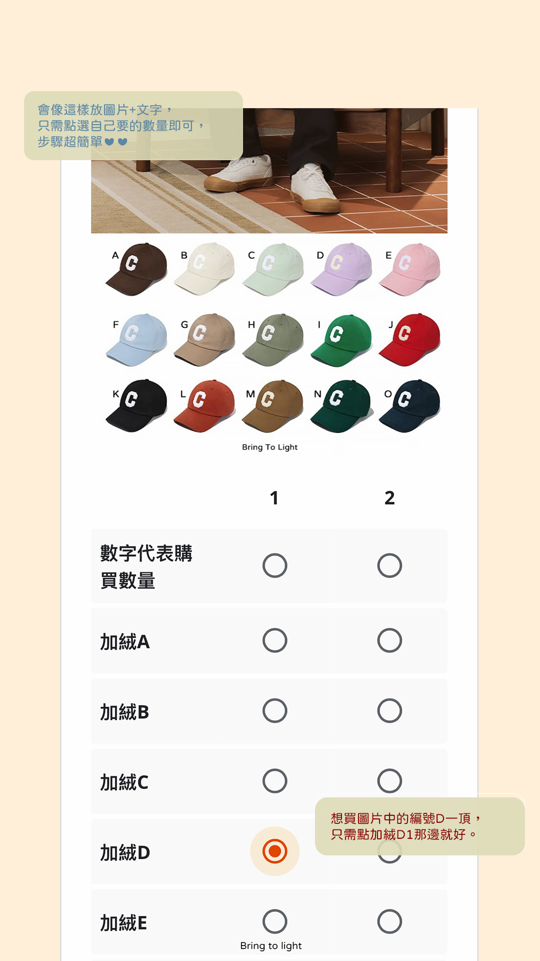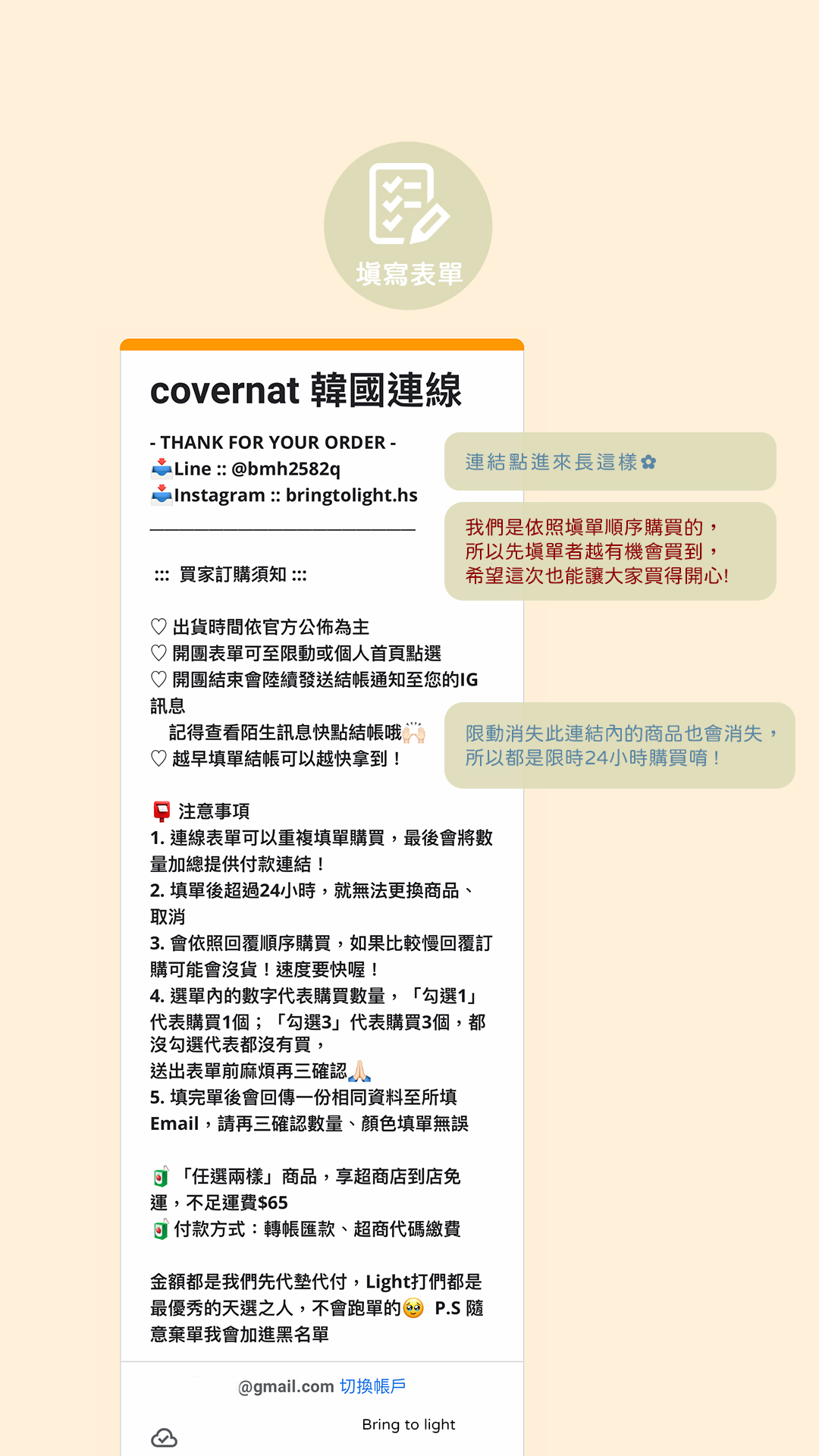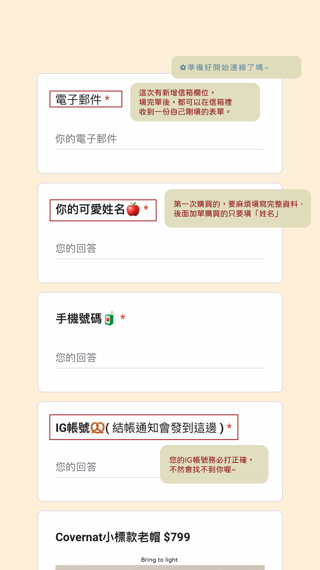 以下表單為示範參考,不同選品會有不同表單,